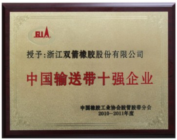 我公司被授予为“2010-2011年度中国运送带十强企业”