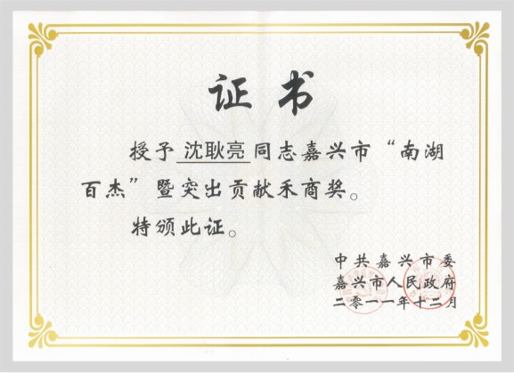 日前,,,,,第二届嘉兴市“南湖百杰”优异人才表扬大会盛大召开,,,,,我公司董事长沈耿亮喜获“‘南湖百杰’暨突出孝顺禾商奖”。。。。。