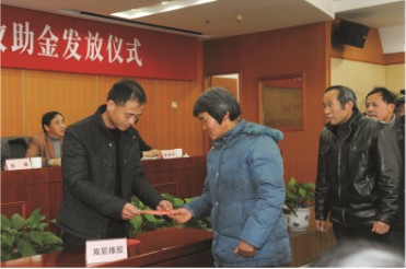 仪式上,,,,,,,市慈善总会会长徐八斤转达了2012年度全市募捐救助和2013春节前的救助安排情形。。。。。。。。我公司在此次救助金发放仪式上发放了6万元救助金,,,,,,,资助了12户贫困家庭,,,,,,,公司向导体现慈善事业是我们企业的责任,,,,,,,也是义务。。。。。。。。我们企业的生长壮大离不开社会各界的资助和支持,,,,,,,现在我们希望尽我们所能资助更多需要资助的人。。。。。。。。