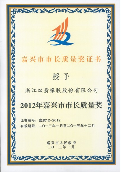 公司喜获2012年度嘉兴市市长质量奖