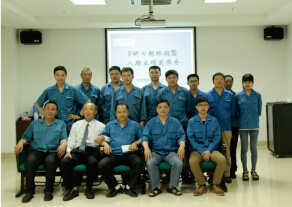 5月31日下昼,,,,,,,,在公司行政楼底楼放映室,,,,,,,,召开了F研第七期终期暨第八期立项宣布会。。。。。。。 。宣布会由公司上升公司生产部司理褚焱主持。。。。。。。 。日本专家松本先生受邀出席,,,,,,,,公司董事长沈耿亮,,,,,,,,副董事长兼总司理沈会民及公司生产部、手艺部、质检部、供应部等相关部分职员加入了此次宣布会。。。。。。。 。