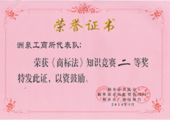 5月15日,,,,,,桐乡市市场监视治理局团结桐乡市普法办、桐乡市广播电视台举行“关注新法、强化意识”为主题的《商标法》知识竞赛运动。。。。。我公司人资企管部周英加入了此次角逐。。。。。